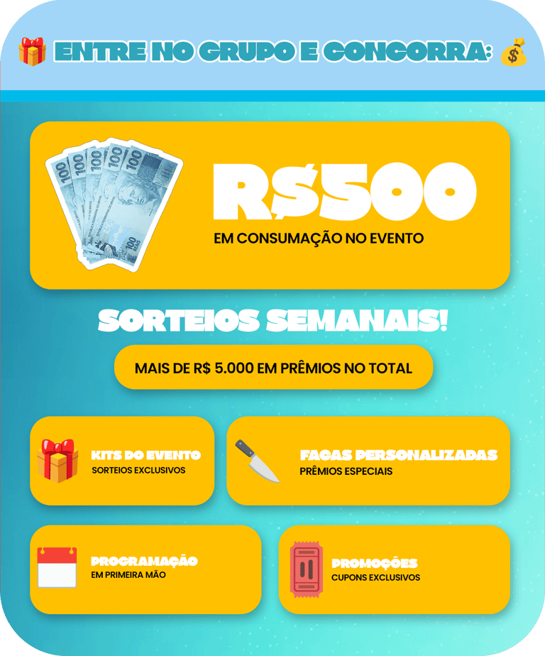 Entre no nosso grupo do WhatsApp e fique por dentro da programação completa, promoções e atrações especiais